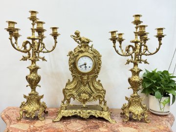 Bộ đồng hồ và chân nến Baby Imperial cổ điển - made in Italy + Bộ máy FHS chạy tuần, ch