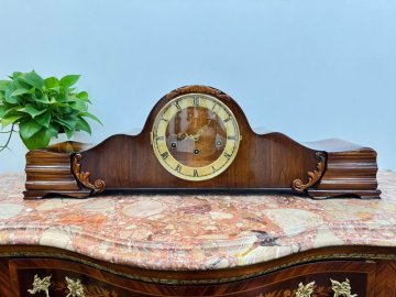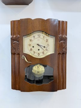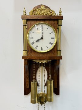 Đồng hồ vai bò Đức xưa -5 gong - chơi nhạc Westminster - Dáng cổ điển , vỏ gỗ uốn lượn kế