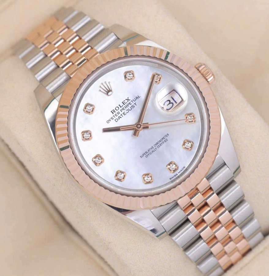Rolex Datejust 126331_MOP (Khảm trai) trắng Diamonds, Demi Vàng hồng đúc 18k, Size 41mm,