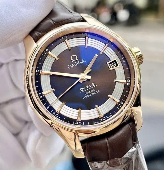 Cặp OMEGA DeVille Hour Vision Dial Chocolate + White, Ref: 431.63.41.21.02 .001, Vàng hồng