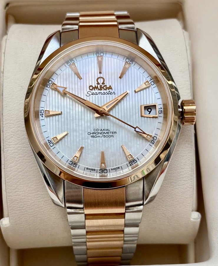 OMEGA Aqua Terra 8500 MOP trắng Diamonds Index, Ref: 231.20.39.21.55 .001, Demi Vàng hồng