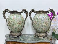 [ CÓ TRIỆN MỘC] --- Cặp Bình Sứ Kiềng Đồng Castilian Thế Kỉ 20 - Trang Trí Cổ Điển