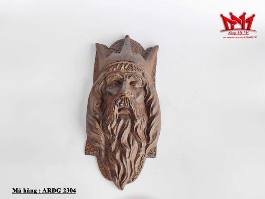 Tượng treo tường bằng kim loại hình đầu nhà vua đội vương miện kiểu cổ điển