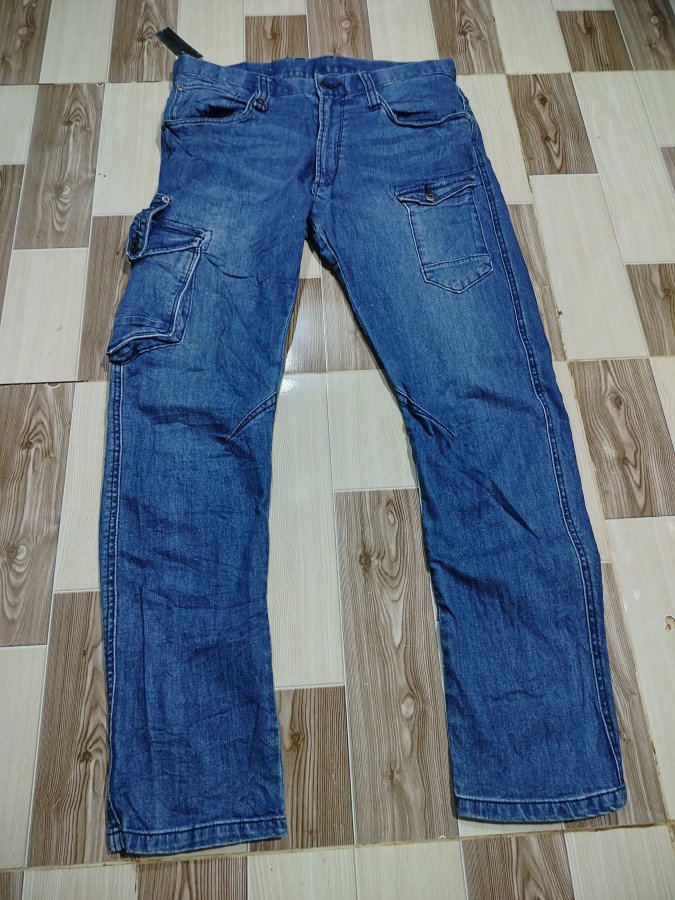 Eo 86 Jeans Nhật cotton co giãn vừa màu xanh faded kinh điển, +2 túi đùi tiện dụng