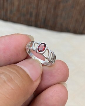 Nhẫn bạc Nữ đính Ngọc hồng lựu đỏ rực, kiểu xinh lên tay rất sang