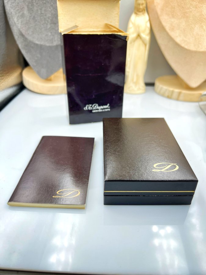 Bật lửa St.Dupont gatsby 2 line new full box vỏ bọc vàng phủ men xanh rất đẹp, còn đủ hộp