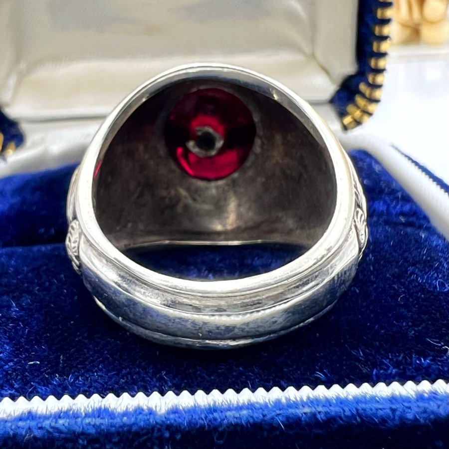 Nhẫn bạc thế chiến U.S Army phôm xưa hoa văn sắc nét đá đỏ huyết mo rất đẹp, size 19mm - n