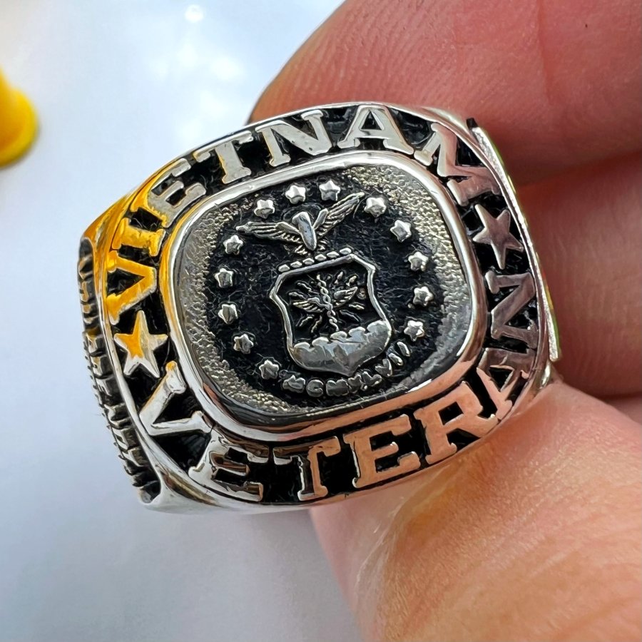 Nhẫn bạc Air Force VietNam Veteran năm 1968-1973 hoa văn sắc nét khảm men rất đẹp, size 20