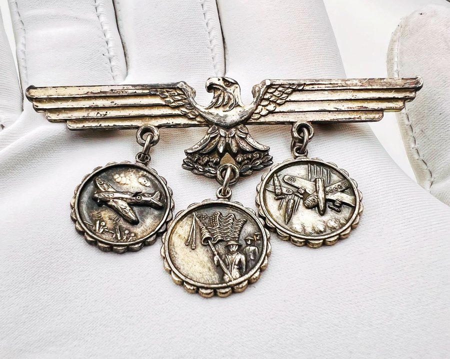 Huy hiệu U.S Army bạc khối chuẩn xưa hãng USC phôm bự hoa văn sắc nét hiếm gặp rất đẹp, si
