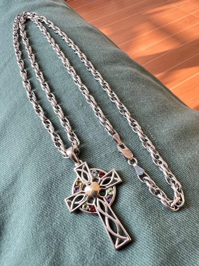 Bộ dây chuyền và mặt thánh giá bạc 925 ốp vàng 10k Ireland mới tinh hoa văn sắc nét đính f