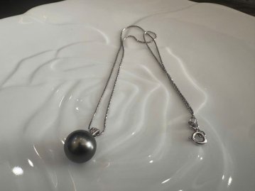 Dây chuyền bạc Italy si kim dài 41cm. Mặt ngọc trai Tahiti 12,6mm tròn đều, bóng đẹp. Em g