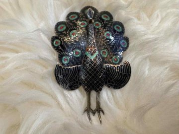 Cài áo hiệu Siam Sterling kt: 7x4,5cm. Chất liệu bạc nguyên chất tráng men hình chú công t
