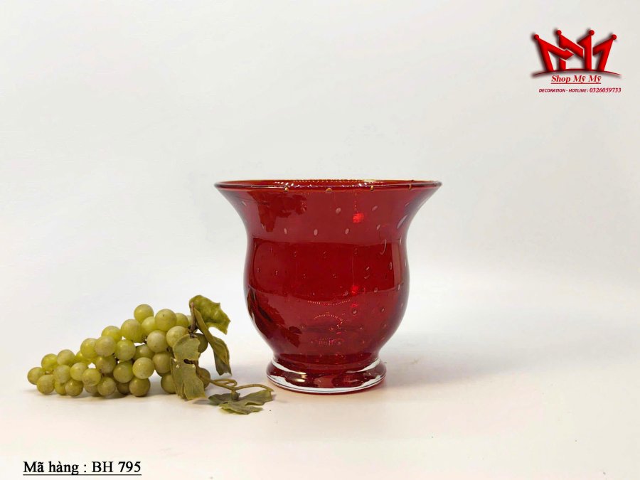Bình thủy tinh màu đỏ ruby (ruby red) rực rỡ, được thiết kế với miệng loe rộng và thân bầu