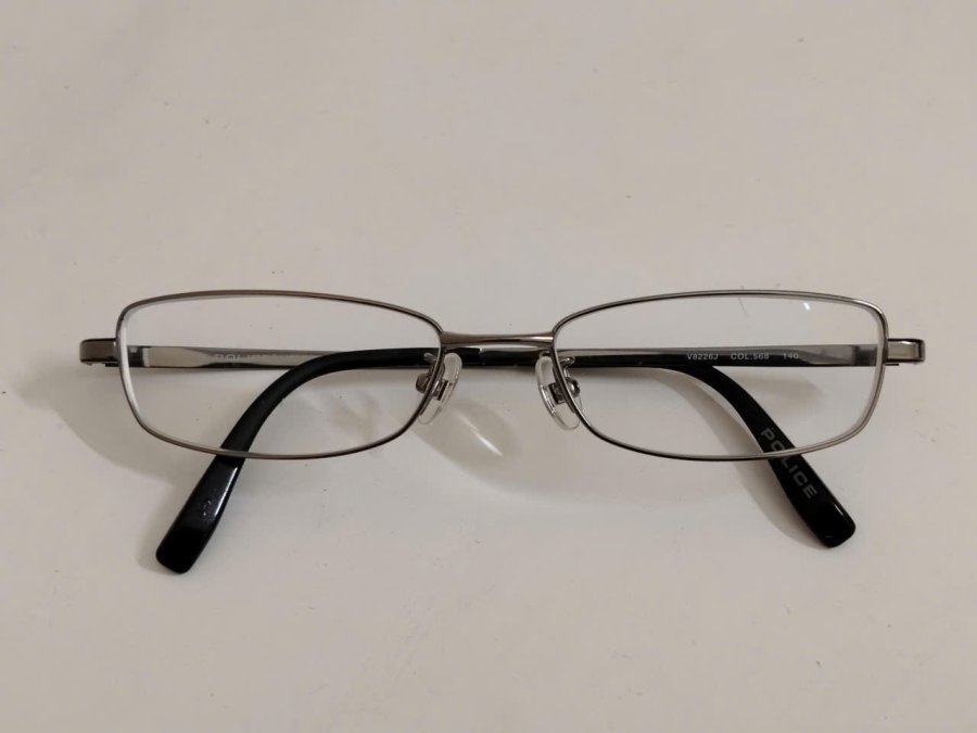 (ĐÃ BÁN) Gọng kính titanium màu bạch kim hun khói Police thương hiệu Italy.