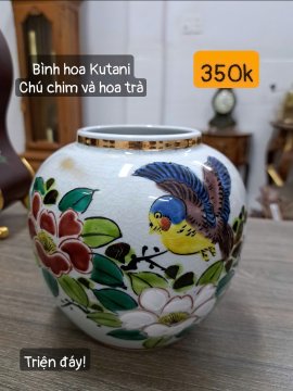 Bình hoa Kutani chú chim và hoa trà _Triện đáy
