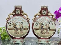 [ CÓ TRIỆN MỘC] - Bình Sứ Satsuma Vẽ Vàng Họa Tiết Tam Cô Nương Size Khủng