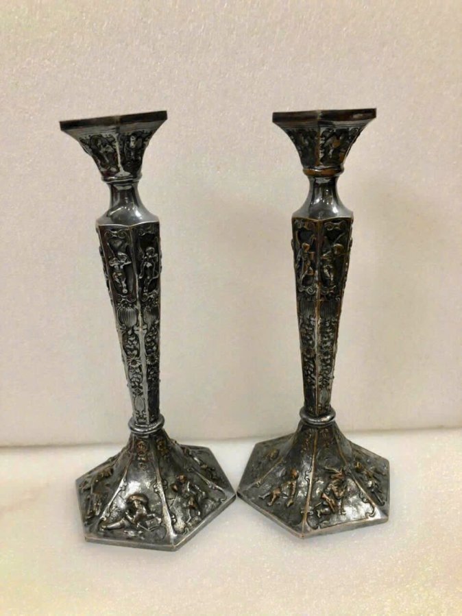 1920s Đôi Chân nến thiên thần bọc Bạc England tinh xảo sưu tầm.