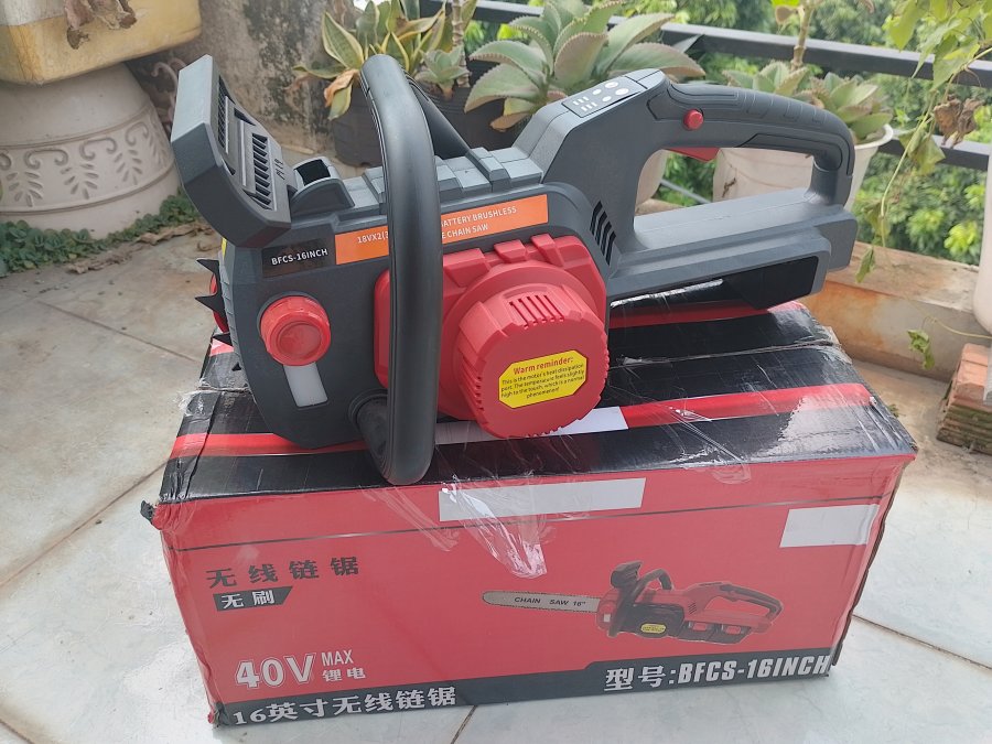 Cưa xích điện hàng nội địa TQ lam 40cm sài 2 pin chân phổ thông mới 100%