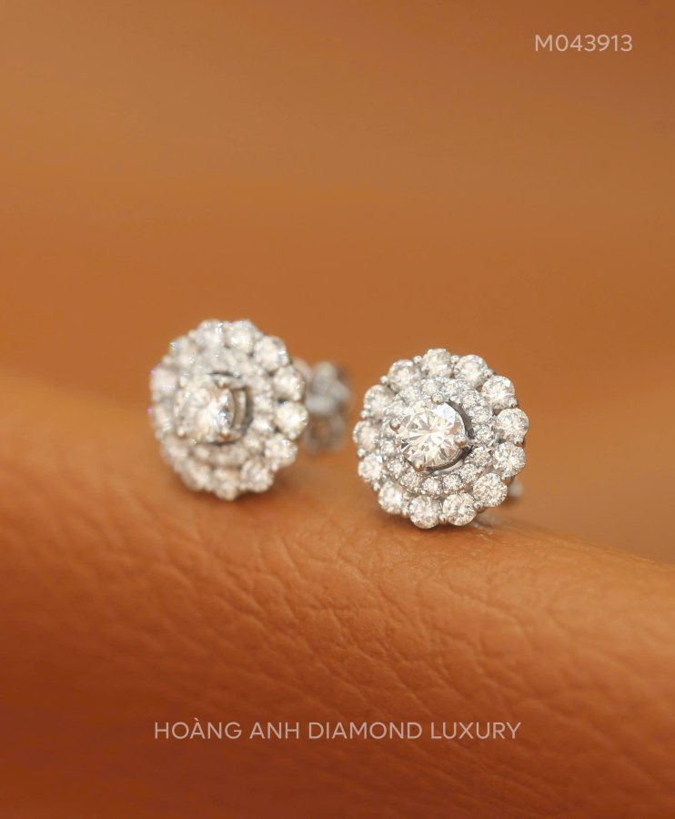 M 043913 Hoa Tai VT14K Gắn 2 Viên Chủ 3,57 - 3,58 Ly FG VVS2 - I