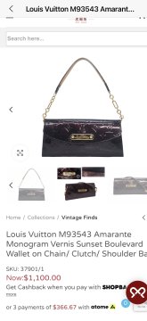 Louis Vuitton M93543 Amarante Monogram Vernis Sunset Boulevard Wallet