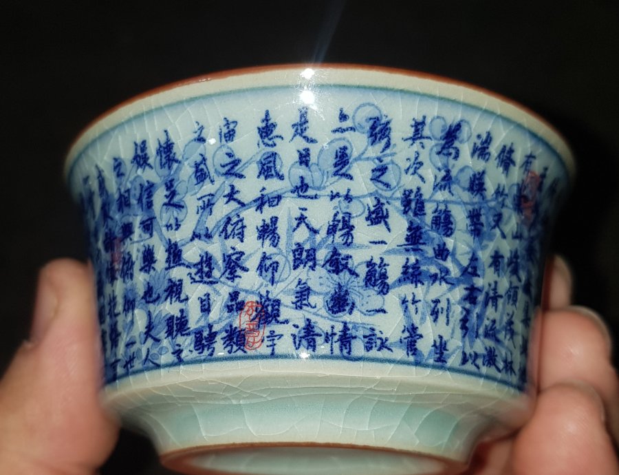 Chén sứ Long Tuyền họa pháp Thương Chu GL450k