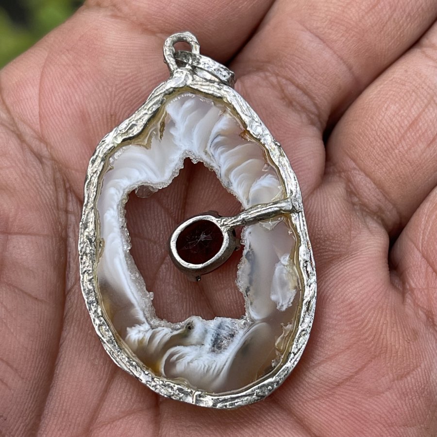 Sự kết hợp đá mã nảo & ganet thiên nhiên Mặt dây chuyền ngoại chế tác thủ công