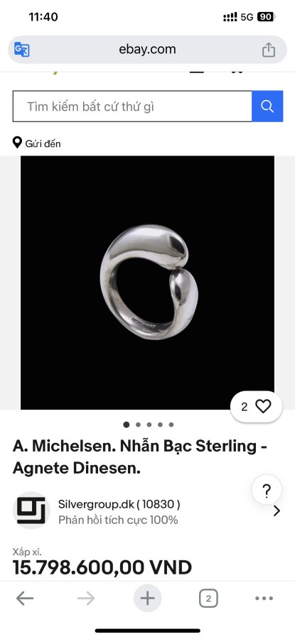 Nhẫn hàng hiệu A. Michelsen chính hãng Đan mạch nguyên zin 100% - chất liệu bạc