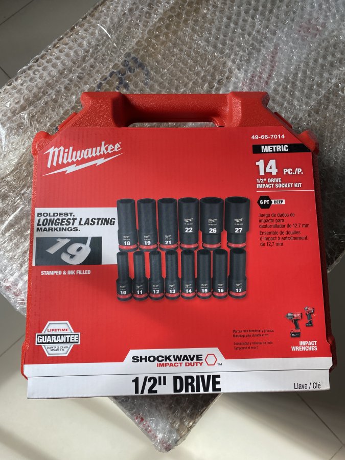 Dạ, Bộ khẩu dài Milwaukee 49-66-7014 Đầu 1/2 inch Gồm 14 đầu