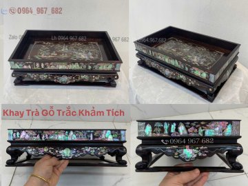 Khay trà khảm tích gỗ trắc
