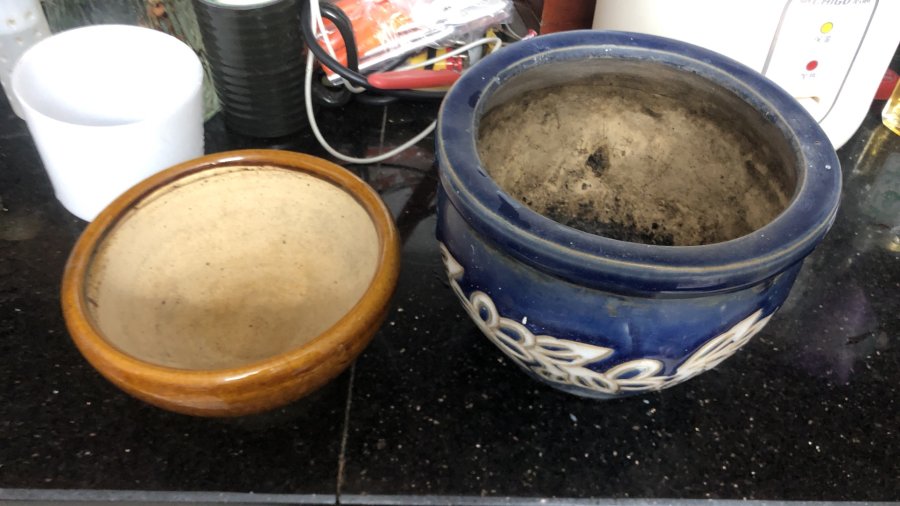 Chậu xưa, đk 16 cao 12 (150k), cối Nhật dk 14 cao 7 (80k) + ship, tất cả lành tít.