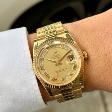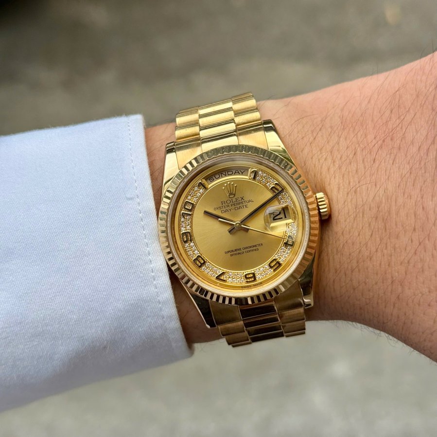 Rolex day date 118238 gold 18k mặt Champage vàng đúc 18k cọc số học trò đính kim cương