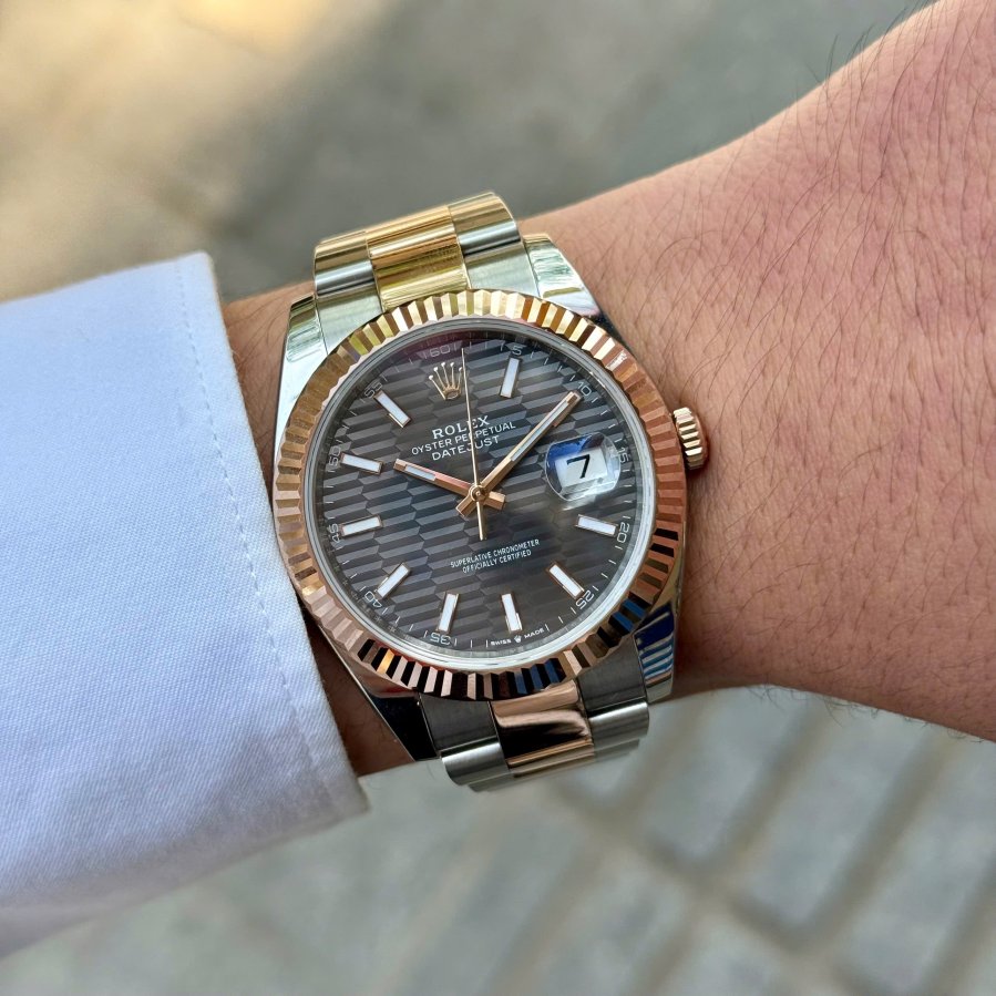 Rolex 126301 demi hồng 18k Grey full 2022 cọc số dạ quang