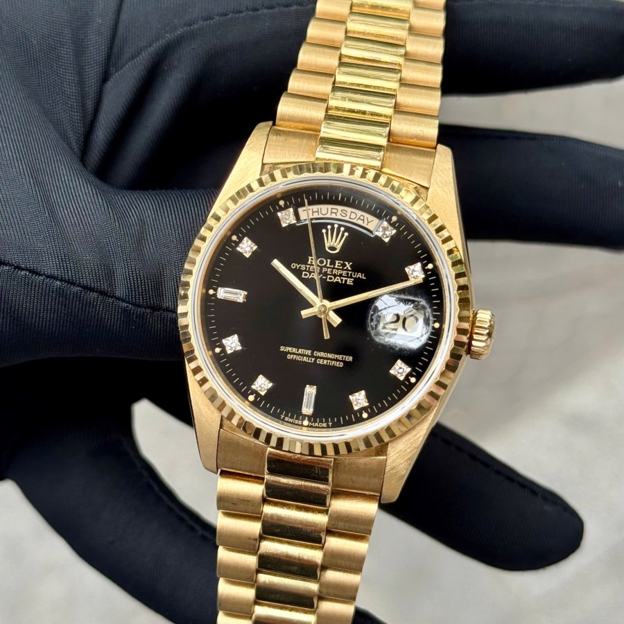 Rolex 5 số 18038 mặt đen bao công gold 18k only