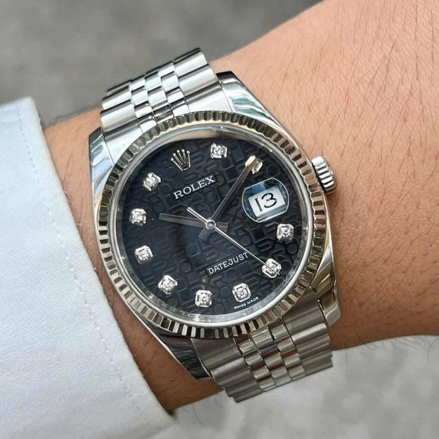 Rolex 116234 mặt vi tính đen cọc số kim cương lớn