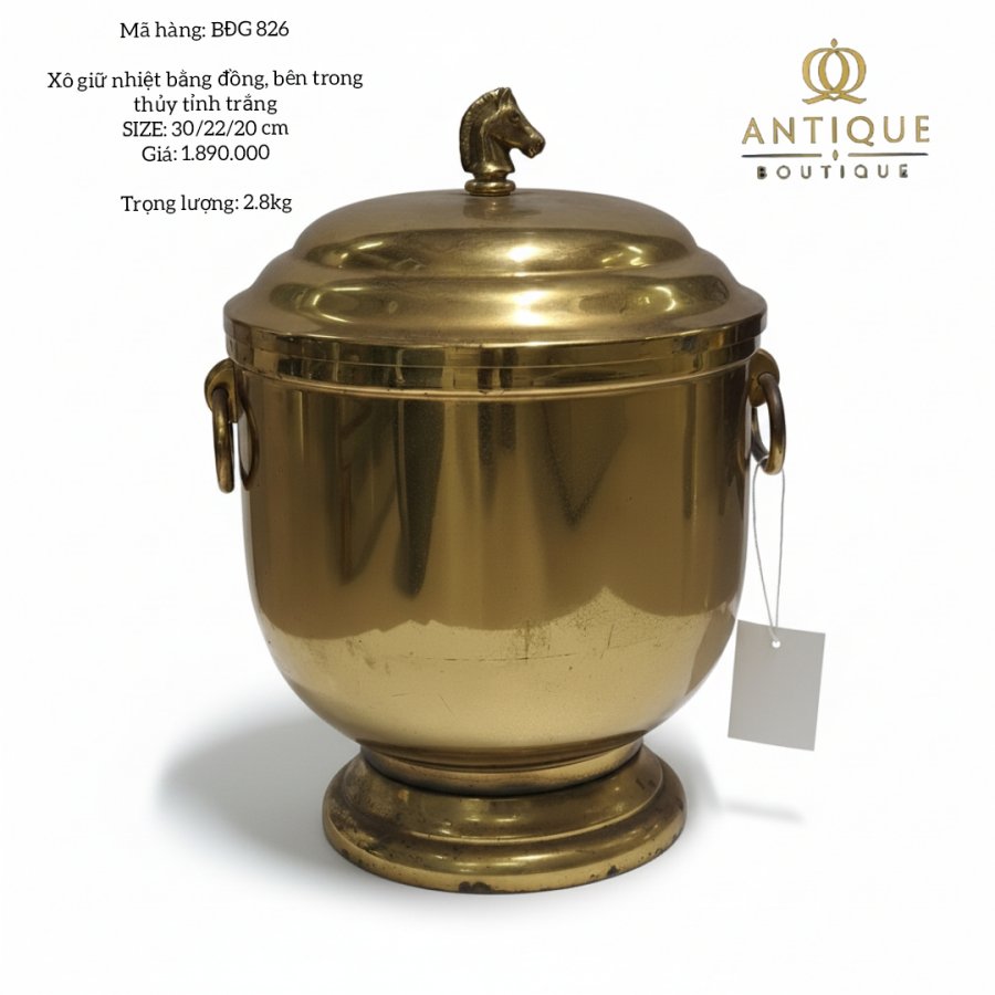 Xô giữ nhiệt bằng đồng , trong ruột bằng thủy tinh