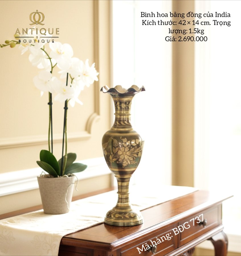 Bình hoa bằng đồng của India, họa tiết hoa lá