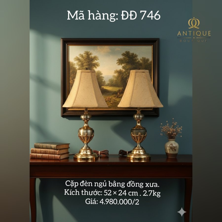 Cặp đèn ngủ bằng đồng xưa. 52 × 24 cm . 2.7kg