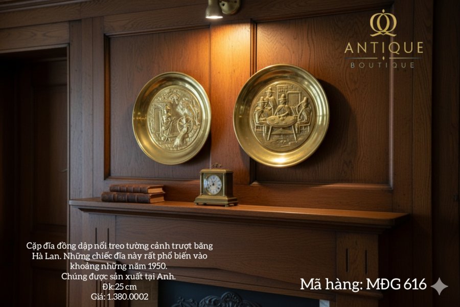 Cặp đĩa tranh đồng treo tường của Anh, cảnh trượt băng