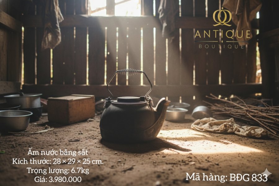 Ấm nước thời báo cấp, dùng bếp củi, bếp than. Ấm sắt