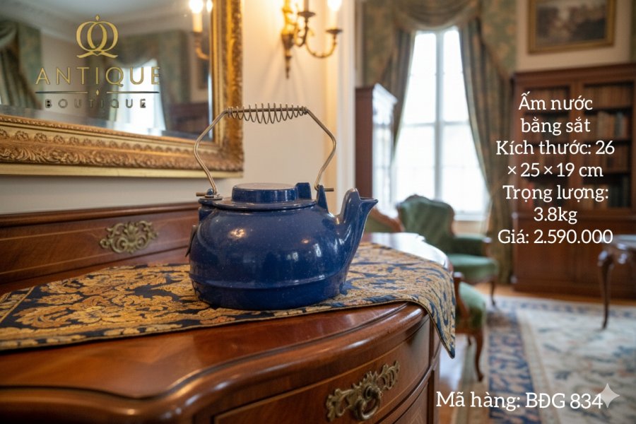 Ấm nước bằng sắt phù hợp cắm trại. Nấu bằng bếp than,củi
