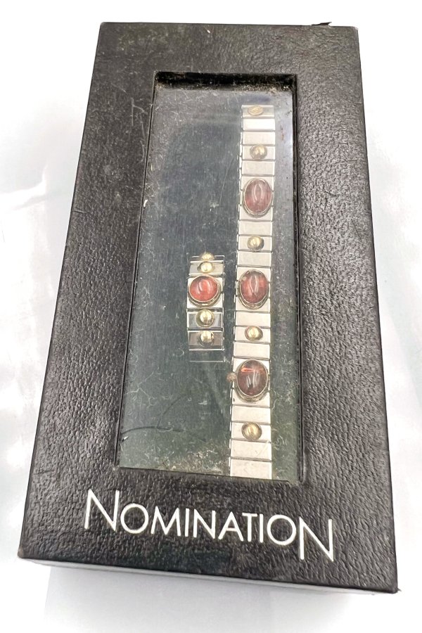 Bộ nhẫn và vòng hợp kim ốp vàng 18k hiệu Nomination mới tinh hoa văn sắc nét đính hổ phách