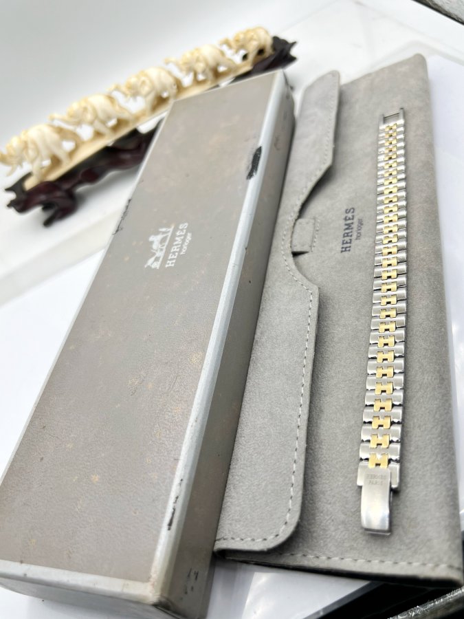 Lắc hợp kim ốp vàng 18k hiệu Hermes mới tinh hoa văn sắc nét khóa gài rất đẹp, còn hộp và