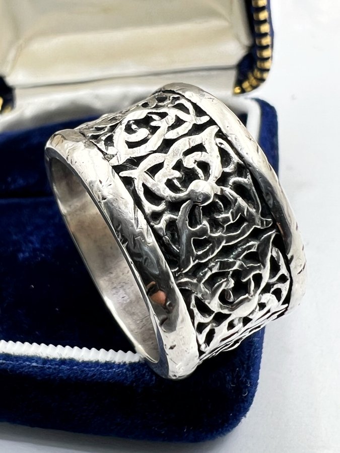 Nhẫn bạc 925 Chrome Hearts phôm bự hoa văn sắc nét rất đẹp, size 21mm - ngang 14mm, nặng 1