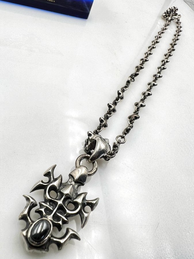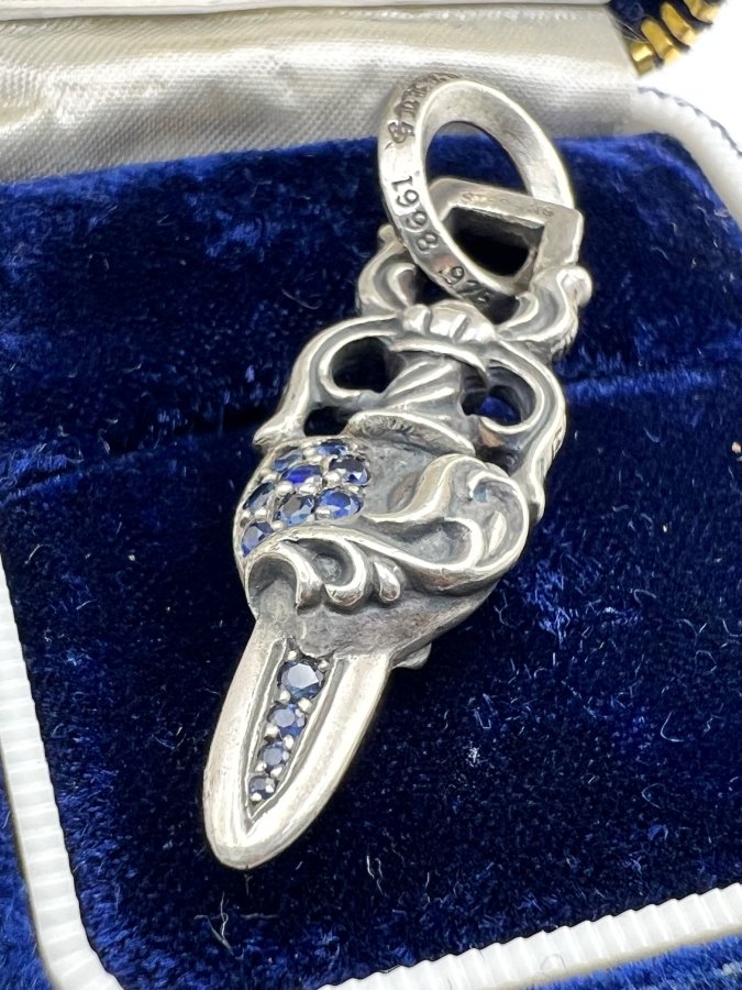 Mặt Dagger Hearts bạc 925 hiệu Chrome Hearts hoa văn sắc nét đính full đá saphia rất đẹp,