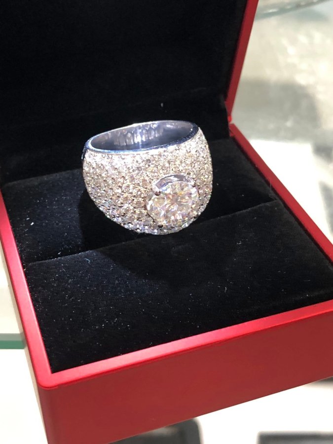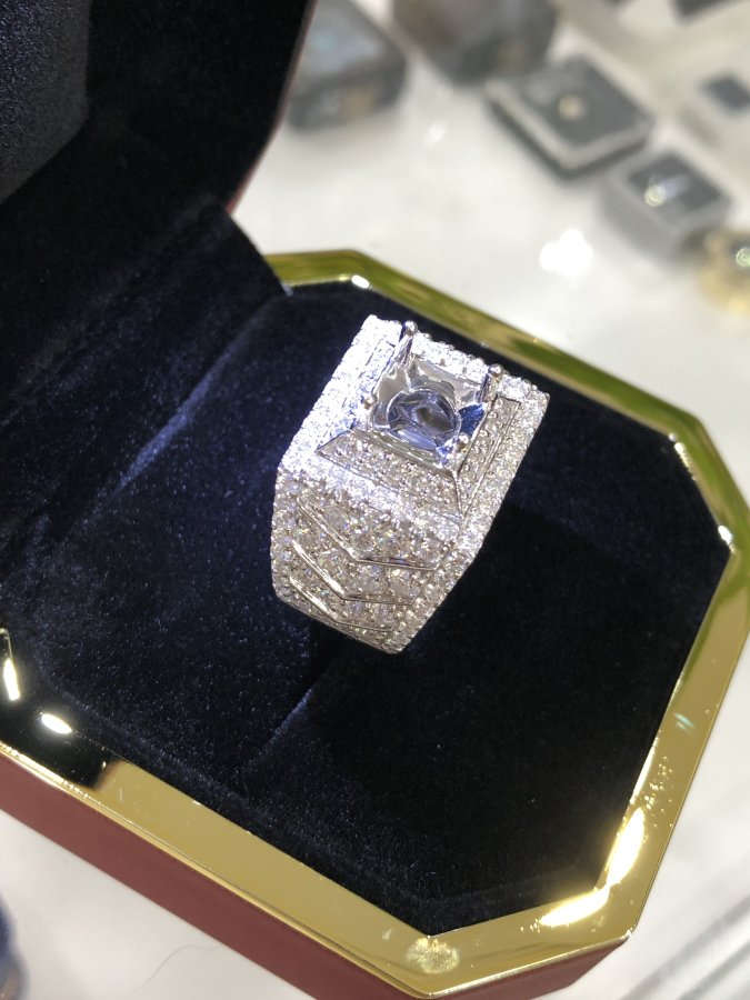 Nhẫn Nam Bạc Xi Vàng Trắng đính Kim Cương Moissanite mẫu Vertu Kính Phố!