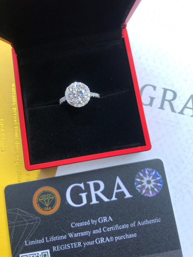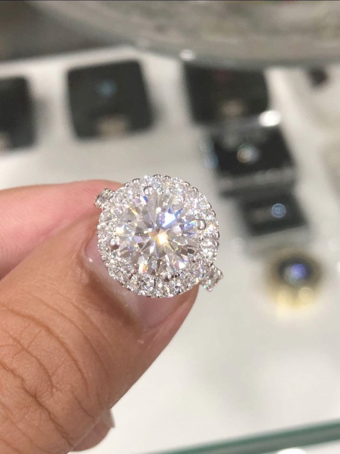 Nhẫn Bạc Xi Vàng Trắng mẫu Halo chủ 9li đính Kim Cương Moissanite Kính Phố !