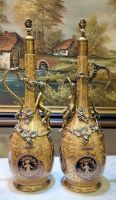 Giao lưu cặp đôn Pháp đẹp xuất sắc. Hoạ tiết bọc đồng vàng,khảm hoa,mặt đá đỏ