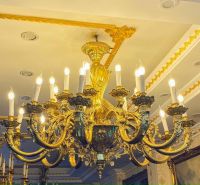 Đèn chùm chân nến Pháp 24 tay bóng đẹp xuất sắc.Chất liệu đồng đúc.Hoạ tiết hoa lá rất đẹp