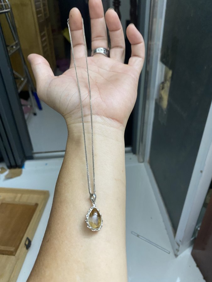 Bộ dây bạc italy , mặt thạch anh tóc bã mía