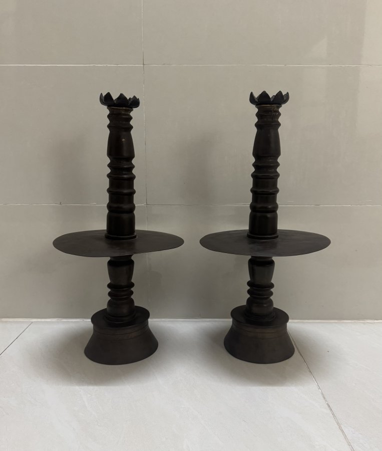 Cặp chân đèn đồng đúc chuẩn xưa, nguyên zin lành đẹp, kính mời.